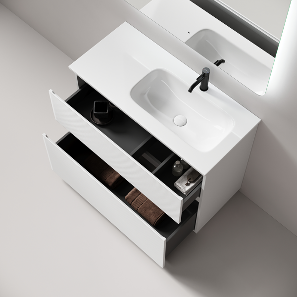 • Каркас и фасад тумбы выполнен из МДФ, покрытие ПВХ - пленка