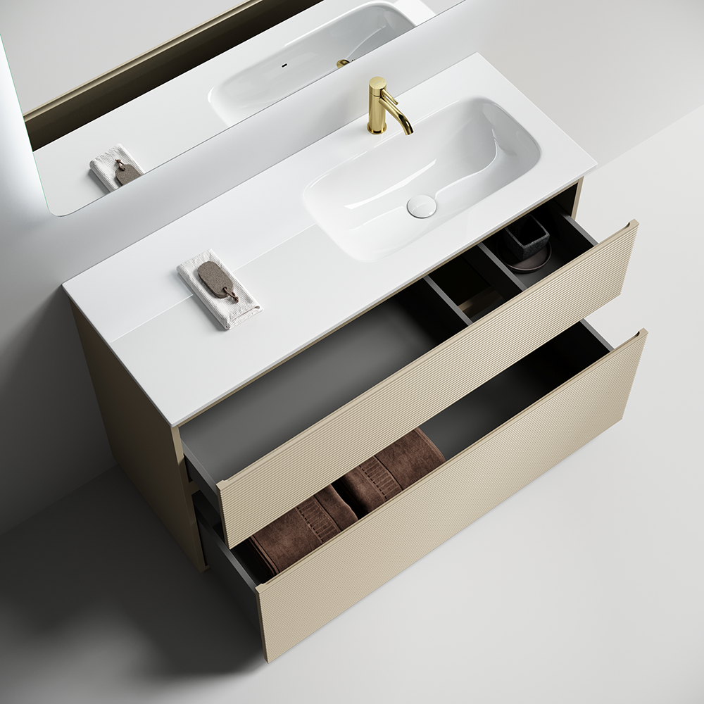 • Тумба напольная с двумя выдвижными ящиками с доводчиками скрытого монтажа