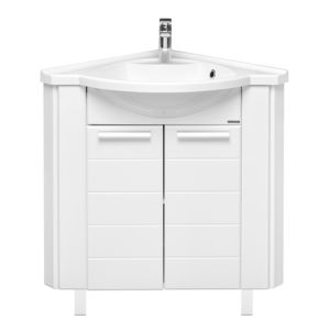Угловая модель для небольших ванных комнат. Тумба на регулируемых по высоте ножках комплектуется удобной раковиной из литого мрамора.Тумба для комплекта Акватон Альтаир 62 угловая белая несравненно подойдет как для просторной ванной комнаты, так и для небольшого помещения. Напольный способ установки производится непосредственно на пол, при этом конструкция максимально устойчива при серьезных физических нагрузках.В производстве используют только качественные влагостойкие материалы (ДСП), в составе которых полностью отсутствуют опасные вещества. Серия Альтаир отличается превосходным дизайном с соблюдением всех важных элементов современного стиля. Основным цветом, в котором выполнена тумба под раковину Акватон Альтаир является белый, гармонирующий с большинством интерьерных решений. Тумба под раковину предусматривает удобную и вместительную систему хранения, состоящую из дверей. Важные размеры товара: ширина 59.8 см, глубина 59.8 см, высота 82 см.Страной бренда Акватон является Россия, все товары производятся с выполнением соответствующих стандартов качества, что позволяет быть полностью уверенными в долговечности и надежности. Тумба для комплекта Акватон Альтаир 62 угловая белая это абсолютный комфорт в современной ванной комнате.