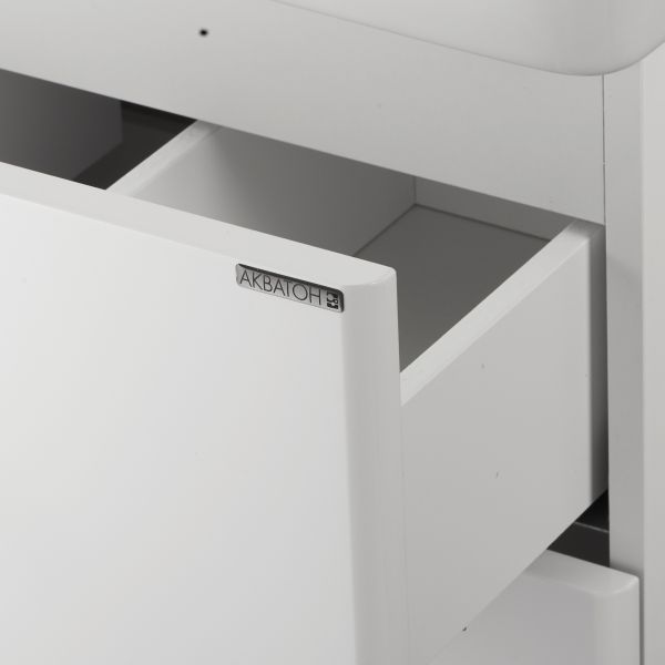 Тумба для комплекта Акватон Америна М 70 белая несравненное решение для создания комфортной атмосферы в любой ванной комнате.В производстве используют только качественные влагостойкие материалы (ДСП), в составе которых полностью отсутствуют опасные вещества. Коллекция Америна выполнена в эксклюзивном дизайнерском решении в лучших традициях современного стиля. Белый, основной цвет исполнения Акватон Америна, безупречно впишется в любой дизайн проект. Тумба под раковину предусматривает удобную и вместительную систему хранения, состоящую из ящиков. Качественные доводчики позволяют обеспечить мягкое и тихое закрывание. Важные габариты изделия: ширина 67 см, глубина 44.2 см, высота 68.8 см.Россия родина бренда Акватон, вся продукция производится со строгим соблюдением всех стандартов, благодаря чему можно быть абсолютно уверенным в надежности и высоком качестве. Тумба для комплекта Акватон Америна М 70 белая это абсолютный комфорт в современной ванной комнате.