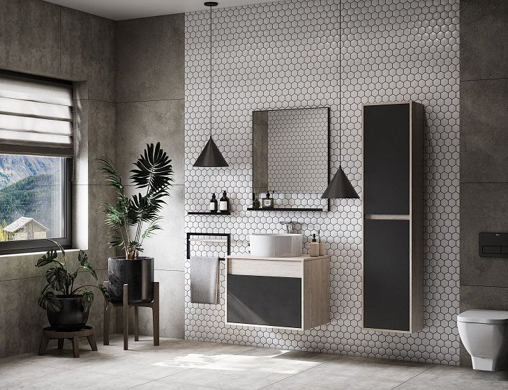 Тумба под раковину Акватон Лофт Урбан 65см дуб орегон/серый графит 1A254001LQX60