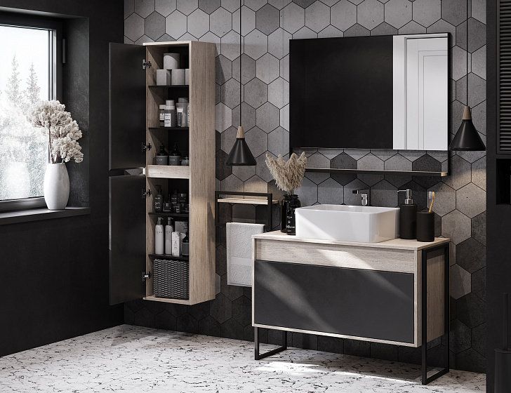 Тумба под раковину Акватон Лофт Урбан 80см дуб орегон/серый графит 1A247601LQX60