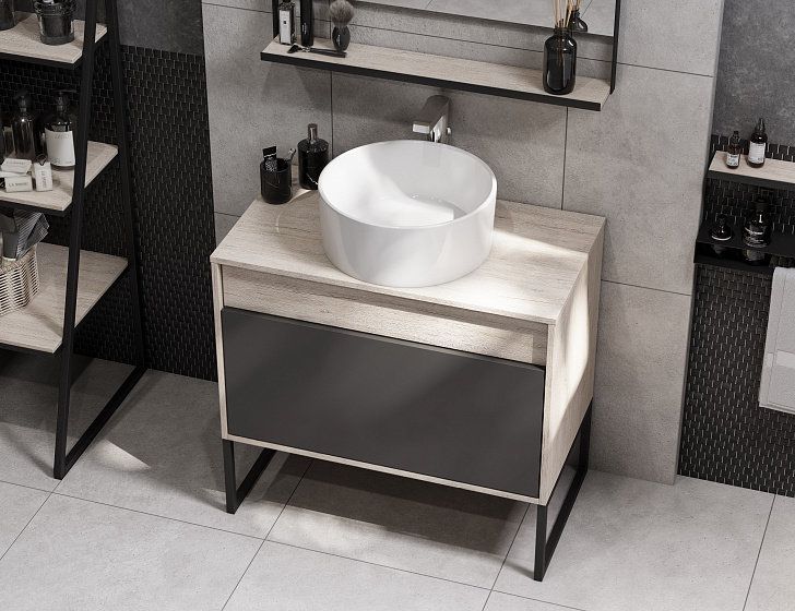 Тумба под раковину Акватон Лофт Урбан 80см дуб орегон/серый графит 1A247601LQX60 купить