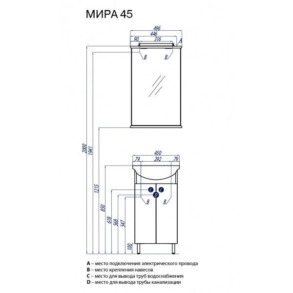 Тумба под раковину Акватон Мира 45см белый 1A104401MR010