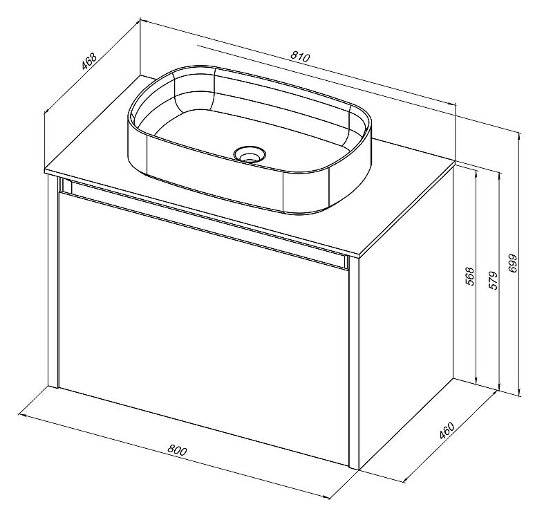 Габариты корпуса тумбы (ШхВхГ): 800х568х460 мм.