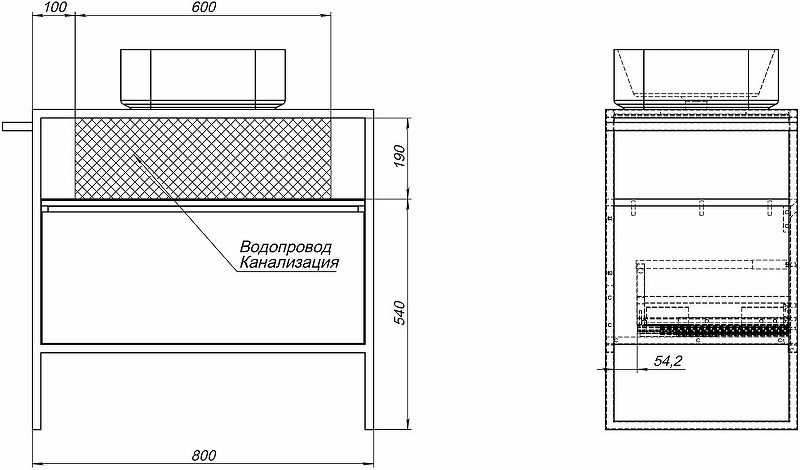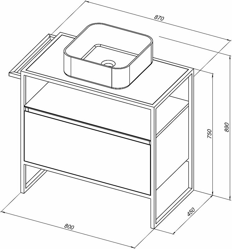 В комплекте поставки:Тумба под раковину (металлический каркас, выдвижной ящик).
