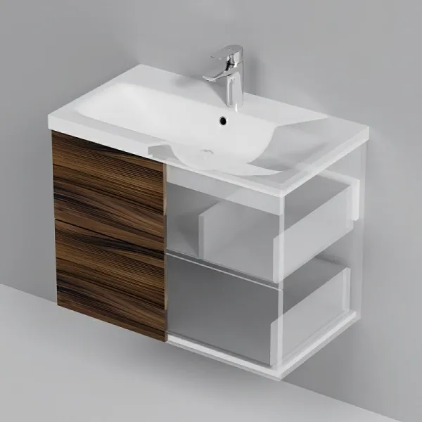Тумба под раковину Am.Pm Gem M90FHX0752HF подвесная орех 75 смПодвесная тумба бренда AM.PM коллекции Gem идеально подойдет тем, кто предпочитает минимализм в интерьере. Современный европейский дизайн от студии DanelonMeroni (Великобритания/Италия). Фурнитура push-to-open - открытие ящика легким нажатием на фасад. Два ящика с антискользящим покрытием цвета "антрацит" – европейский стандарт. Размер (Ш/Г/В): 750x410x540 мм.