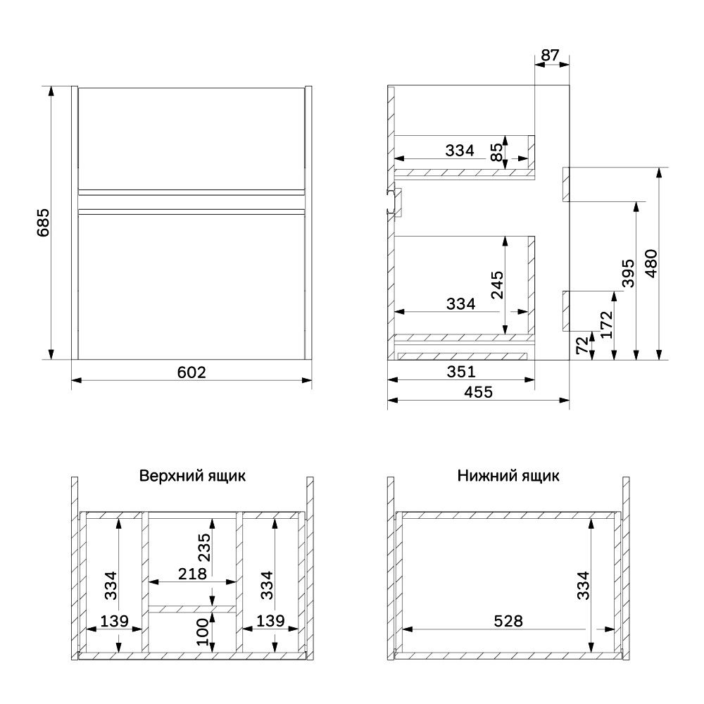 Два вместительных ящика на направляющих Soft-close скрытого монтажа, которые обеспечивают плавное и бесшумное открывание и закрывание - использование тумбы максимально комфортное.