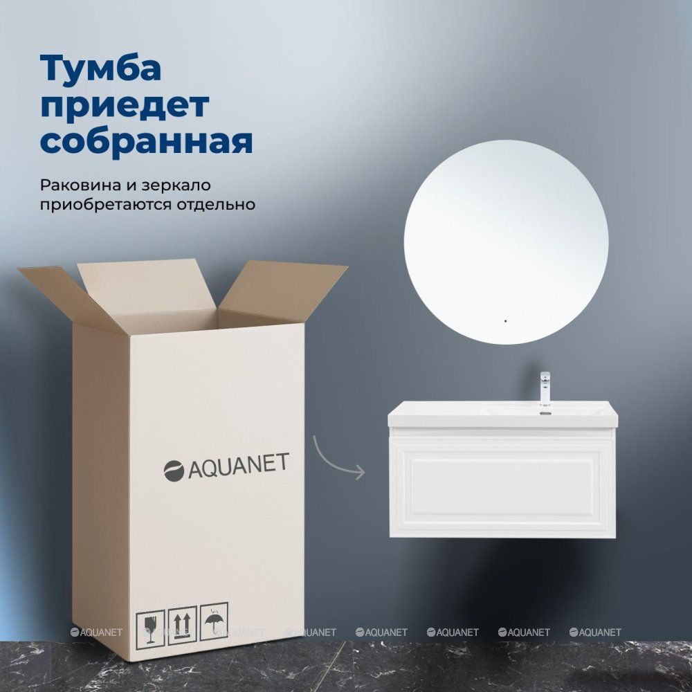 Тумба под раковину Aquanet Агата 100 белый сатин сочетает элегантность неоклассики с практичност... Подробнее