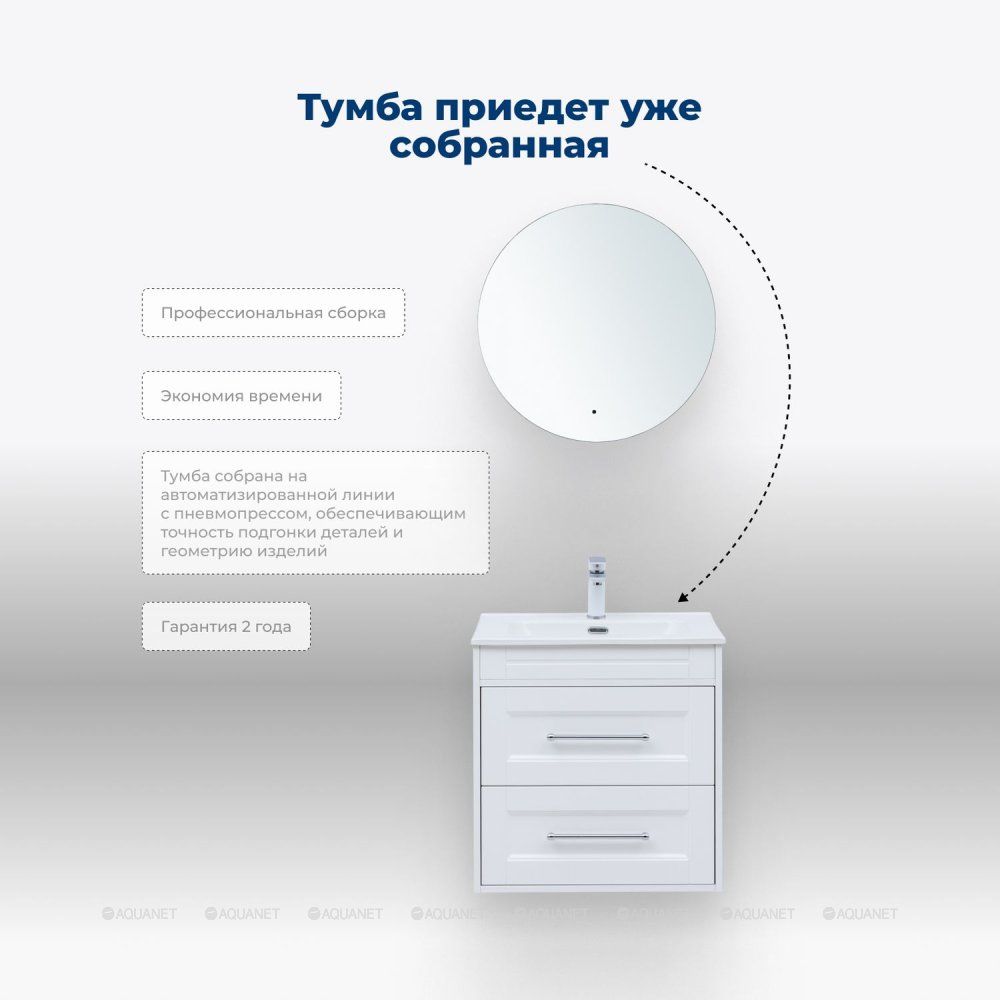 Тумба под раковину Aquanet Бостон New 339599 70 см белый сатин