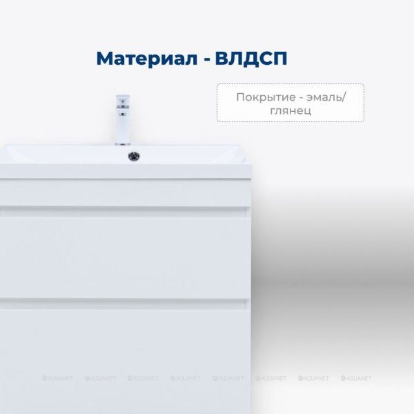Корпус и фасады изготовлены из влагостойкой ЛДСП с эмалевым покрытием, что обеспечивает устойчивость к влаге и долговечность. Глянцевая поверхность придает тумбе стильный внешний вид, легко вписывающийся в любую обстановку.