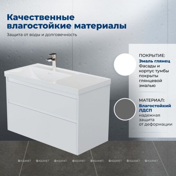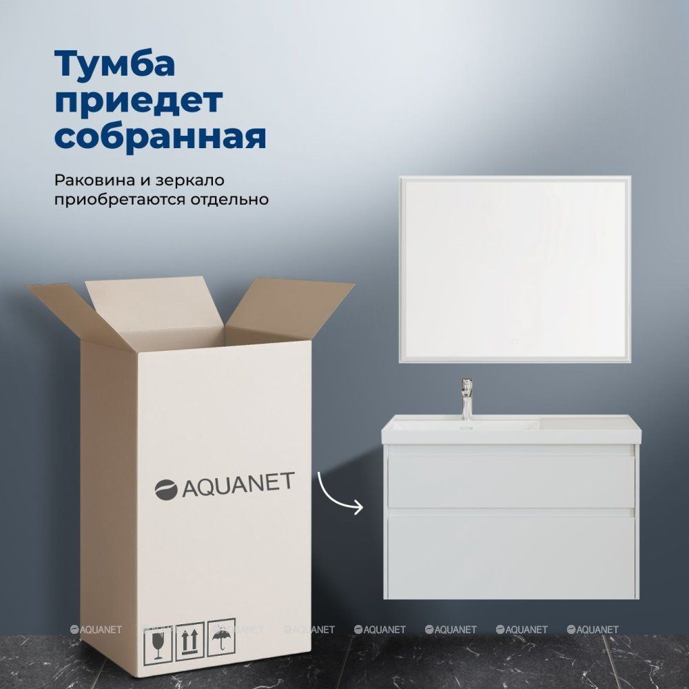 Тумба под раковину Aquanet Nova Lite 2.0 100 в белом цвете с глянцевым покрытием станет практи... Подробнее