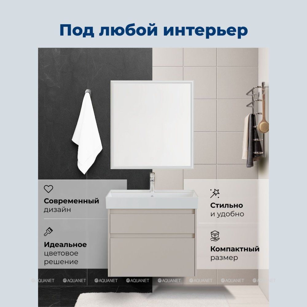 Тумба под раковину Aquanet Nova Lite 2.0 75 бежевый Компактная и стильная тумба под раковину... Подробнее