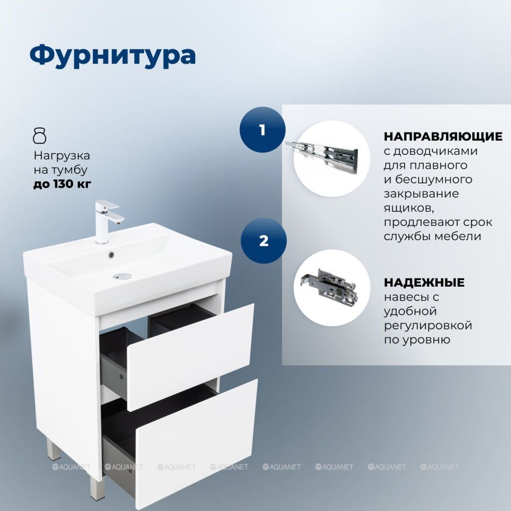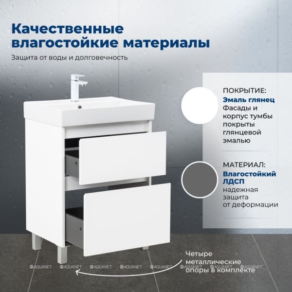 Тумба под раковину Aquanet Nova Lite 2.0 60 напольная, белый глянец Компактная и стильна... Подробнее