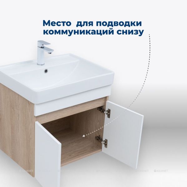Тумба Aquanet Оптима 70 продумана до мелочей. В ней предусмотрено удобное место для подводки коммуникаций снизу, что облегчает установку и подключение сантехнического оборудования.