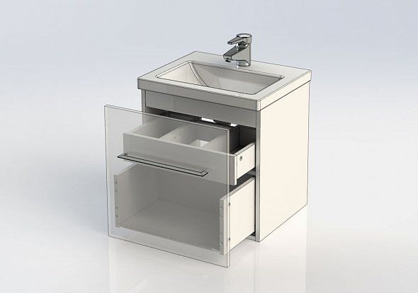 Тумба Aquanet Порто 60 белого цвета отличается стильностью и функциональностью. Внешний ее лаконизм скрывает в себе очень продуманный конструктивизм внутреннего устройства, где невысокий ящик с тремя отделениями скрывается за фасадом основного места хранения, поэтому разместить в этой небольшой на первый взгляд модели шириной 50 см можно много полезных в ванной комнате мелочей, а также найти место для высоких емкостей. Материал фасадов – крашенный белым глянцем влагостойкий МДФ. Для оборудования тумбы использованы петли и доводчики польской фирмы Gamet — одного из крупнейших производителей мебельной фурнитуры и комплектующих в Европе. В этом можно убедиться, оценив качество доводчиков, которые позволяют плавно отодвигать и задвигать ящики, а также убедившись в надежности ручек.