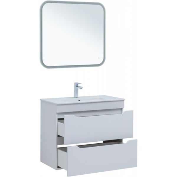 Удобная интегрированная ручка на фасаде добавляет функциональности и современного шарма к дизайну. Тумба под раковину Aquanet Практика 80 белый матовый предлагает не только стильное исполнение, но и практичность в использовании.