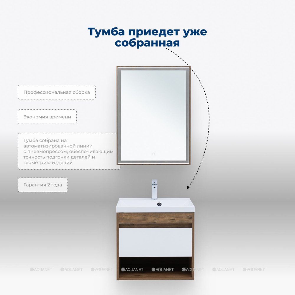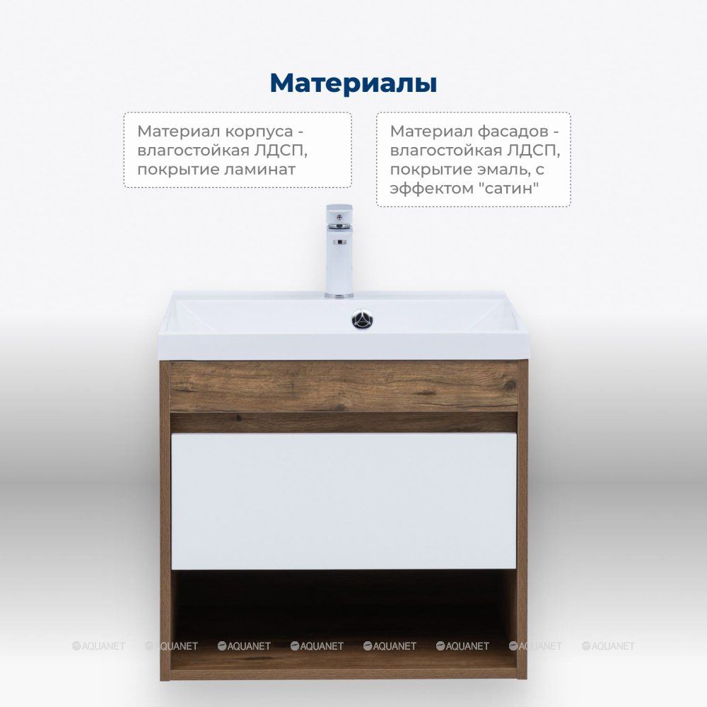 Тумба под раковину Aquanet Тренд 60 дуб рустикальный/белый сатин : Изысканное сочетание фун... Подробнее