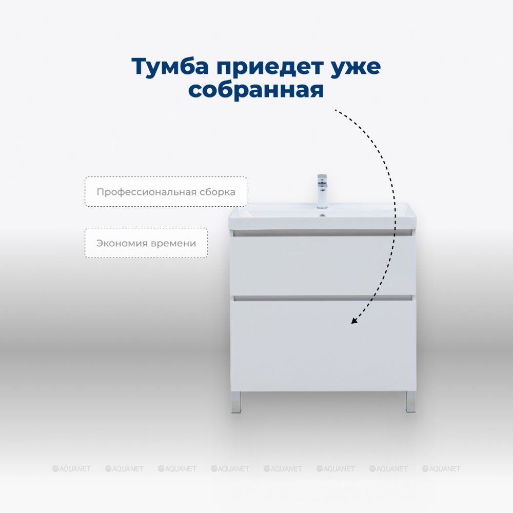 Тумба под раковину Aquanet Вега 60 напольная в отделке "белый глянец" – это воплощение эле... Подробнее