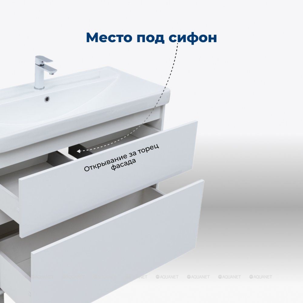 Пластиковое ограждение сифона в сером цвете аккуратно скрывает коммуникации. Прочное дно нижнего ящика, изготовленное из влагостойкой ЛДСП толщиной 16 мм, позволяет хранить даже тяжелые предметы. Предусмотренное место за нижним ящиком для подводки коммуникаций снизу упрощает монтаж и подключение сантехники. Aquanet Вега 60 – это оптимальное решение для создания стильного и практичного интерьера ванной комнаты.