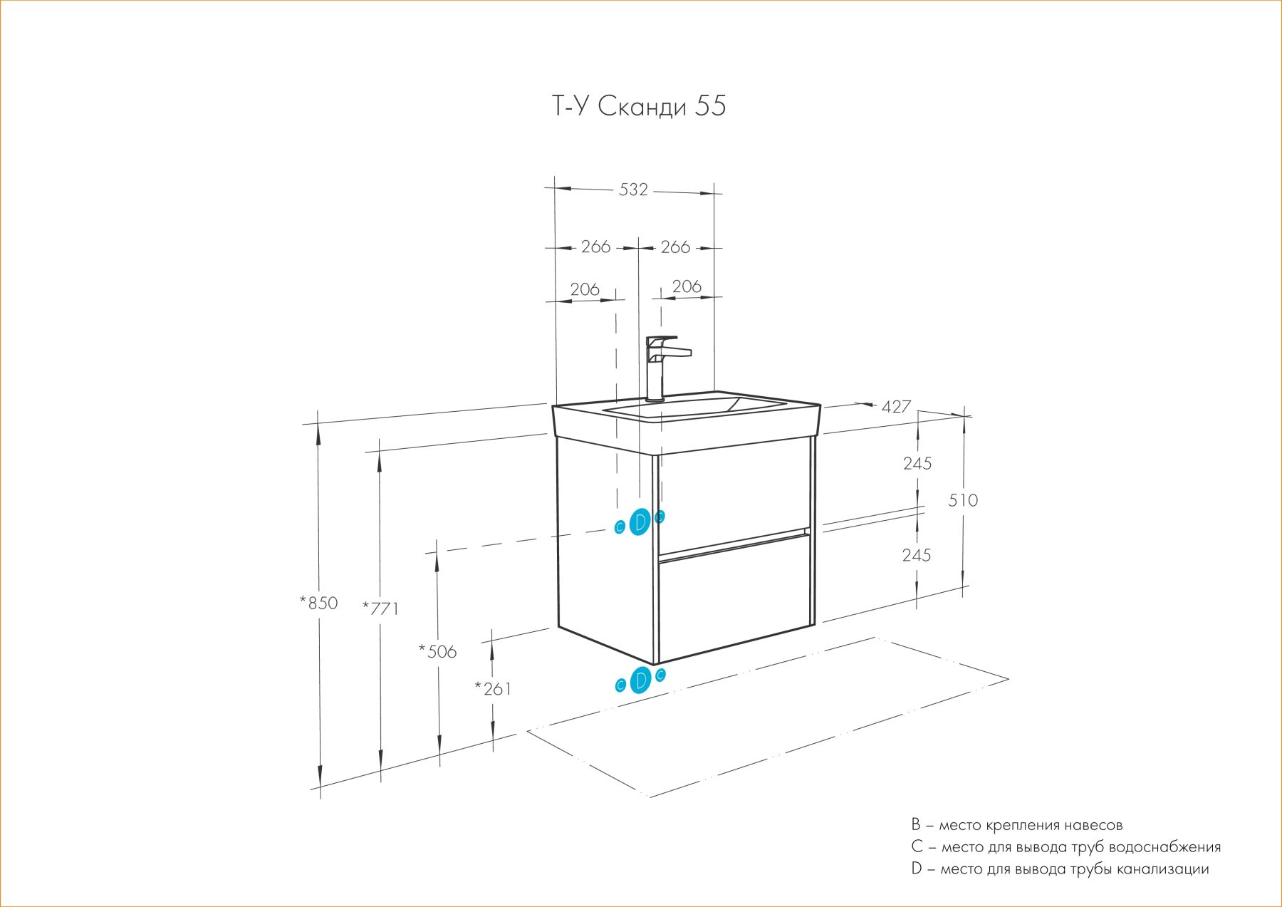 Тумба под раковину Aquaton Сканди 55 1A251701SDB20 подвесная Белый/Дуб верона купить