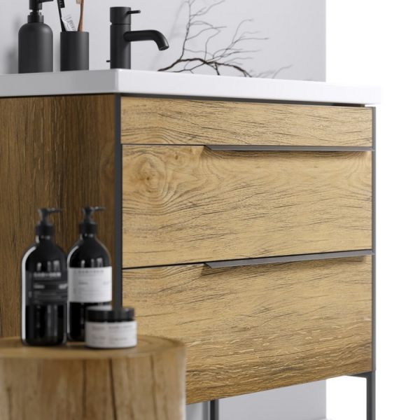 Тумба под раковину Aqwella Fargo FRG0107DB+FRGN440 70 смНапольная тумба в цвете дуб балтийский с двумя ящиками с умывальником