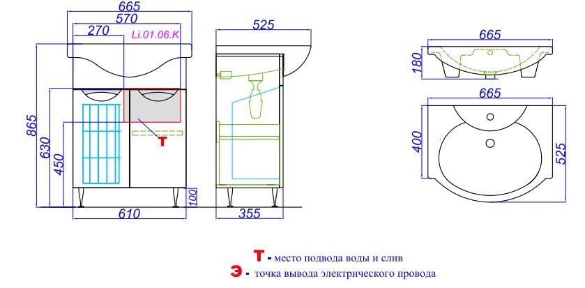 Тумба под раковину Aqwella Лайн 66 Li.01.06.K с корзиной