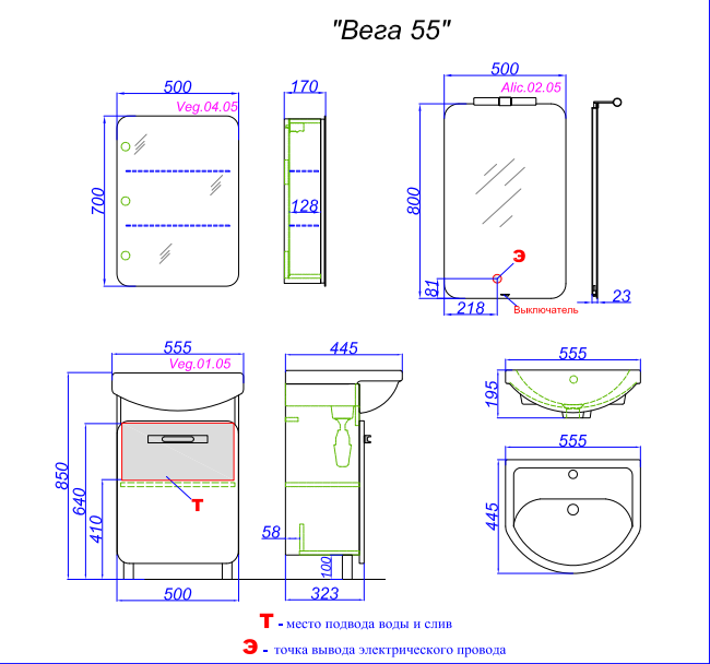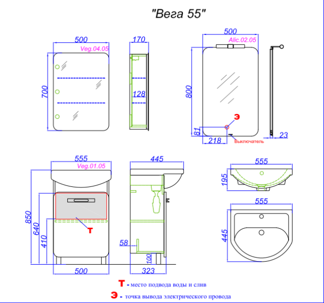Тумба под раковину Aqwella Вега 55 Veg.01.05