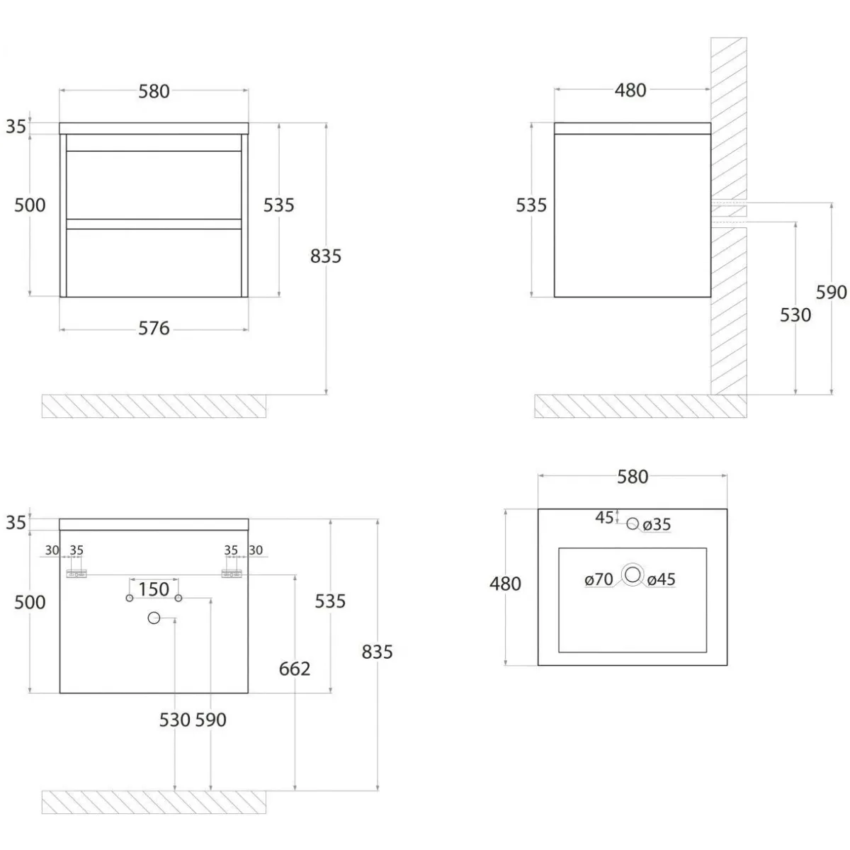 FAMILY-M База под раковину подвесная с двумя выкатными ящиками, Iron Stone, 580x480x550, Family-... Подробнее