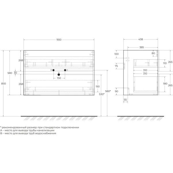 TORINO База под раковину подвесная с двумя выкатными ящиками, Лотос AM-TORINO-900-2C-SO-LO-P Подробнее