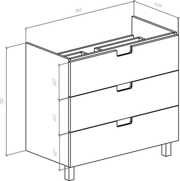 - Габариты: ширина 86.2 см, глубина 44 см, высота 47.2 см
