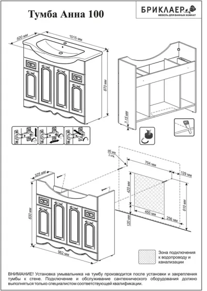 Тумба под раковину Бриклаер Анна 4627125411434 100 см белый