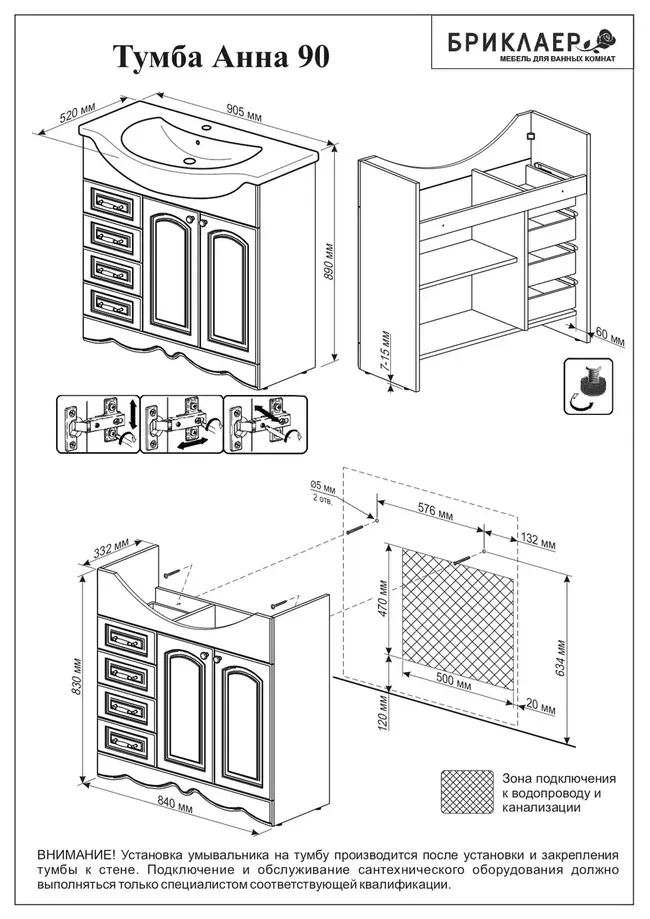 Тумба под раковину Бриклаер Анна 4627125412172 90 см белый