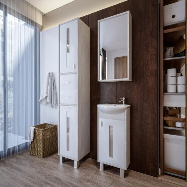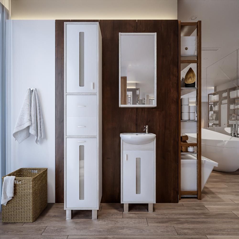 Удобная система хранения позволяет размещать все необходимое для гигиенических процедур, а её продуманные размеры отлично вписываются даже в небольшие помещения. Стильные ручки и элегантные фасады придают тумбе особый шарм, а разнообразие цветовых решений позволит выбрать модель, соответствующую любому интерьеру – от классического до модерн.