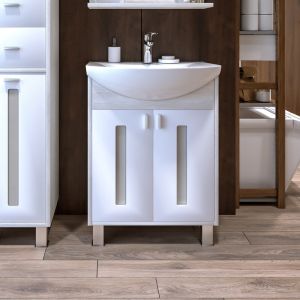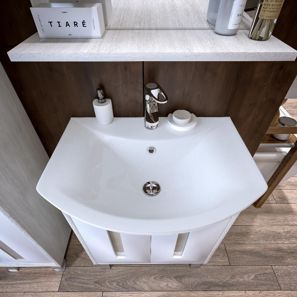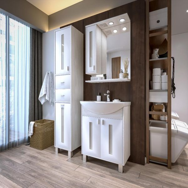 Удобная система хранения позволяет размещать все необходимое для гигиенических процедур, а её продуманные размеры отлично вписываются даже в небольшие помещения. Стильные ручки и элегантные фасады придают тумбе особый шарм, а разнообразие цветовых решений позволит выбрать модель, соответствующую любому интерьеру – от классического до модерн.