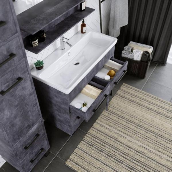 Удобная система хранения позволяет размещать все необходимое для гигиенических процедур, а её продуманные размеры отлично вписываются даже в небольшие помещения. Стильные ручки и элегантные фасады придают тумбе особый шарм, а разнообразие цветовых решений позволит выбрать модель, соответствующую любому интерьеру – от классического до модерн.