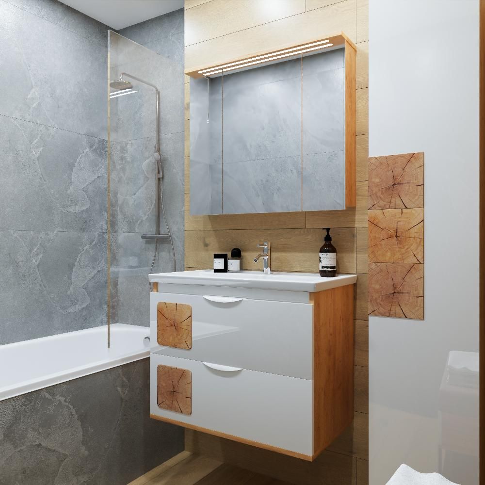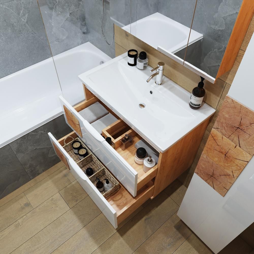 Тумба под раковину Бриклаер Форест 4627125416750 80 см дуб золотой/белый купить