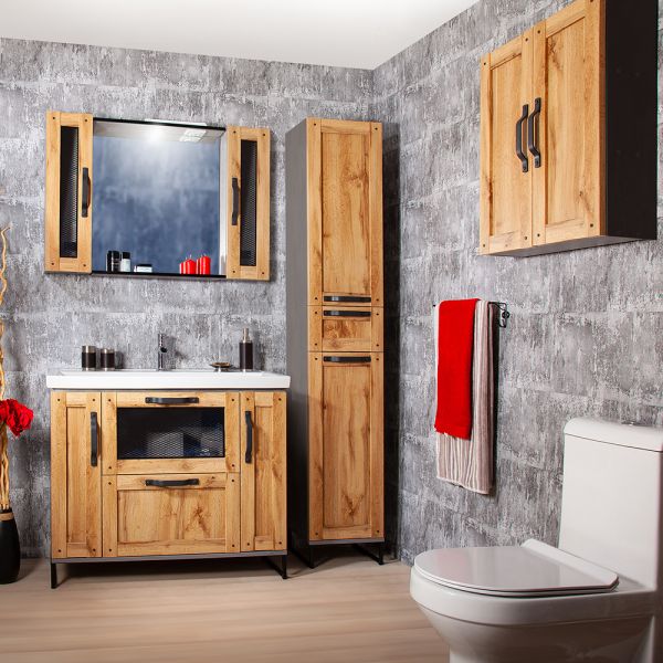 Удобная система хранения позволяет размещать все необходимое для гигиенических процедур, а её продуманные размеры отлично вписываются даже в небольшие помещения. Стильные ручки и элегантные фасады придают тумбе особый шарм, а разнообразие цветовых решений позволит выбрать модель, соответствующую любому интерьеру – от классического до модерн.