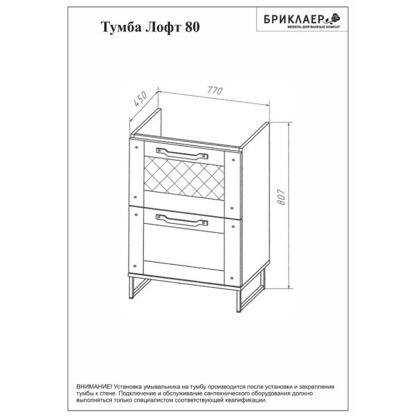Тумба под раковину Бриклаер Лофт 4627125413414 80 см метрополитен грей купить
