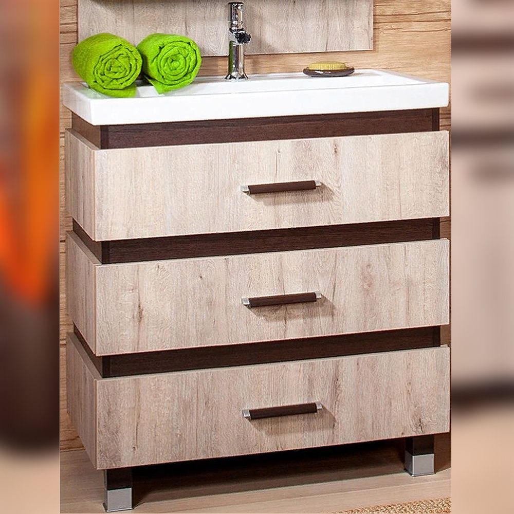 Удобная система хранения позволяет размещать все необходимое для гигиенических процедур, а её продуманные размеры отлично вписываются даже в небольшие помещения. Стильные ручки и элегантные фасады придают тумбе особый шарм, а разнообразие цветовых решений позволит выбрать модель, соответствующую любому интерьеру – от классического до модерн.