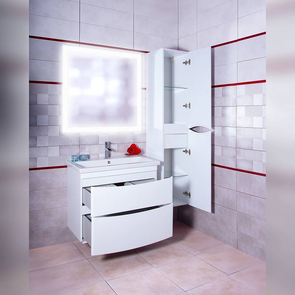 Тумба под раковину Бриклаер Вега 4627125414077 с двумя ящиками 80 см белый купить