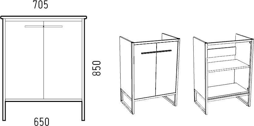 Тумба для комплекта Corozo Айрон 70 превосходно подойдет как для просторной ванной комнаты, так и для небольшого помещения. Напольный способ установки производится непосредственно на пол, при этом конструкция максимально устойчива при серьезных физических нагрузках.В производстве используют только качественные влагостойкие материалы (МДФ / железо), в составе которых полностью отсутствуют опасные вещества. Серия Айрон отличается превосходным дизайном с соблюдением всех важных элементов современного стиля. Основным цветом, в котором выполнена тумба под раковину Corozo Айрон является черный, гармонирующий с большинством интерьерных решений. Тумба под раковину предусматривает удобную и вместительную систему хранения, состоящую из дверей. Качественные доводчики позволяют обеспечить мягкое и тихое закрывание. Ключевые габариты изделия: ширина 65 см, глубина 43.5 см, высота 85 см.Страной бренда Corozo является Россия, все товары производятся с выполнением соответствующих стандартов качества, что позволяет быть полностью уверенными в долговечности и надежности. Тумба для комплекта Corozo Айрон 70 правильный выбор в современном дизайне ванной, придающий уникальность всему помещению, при этом сохраняя функциональность.