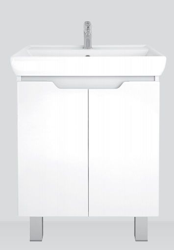 Тумба под раковину Dreja Q PLUS (D) 99.1004 60 см Белый глянецТумба Q PLUS (D), 55 см, подвесная/напольная, 2 дверцы, с опорами, белый глянец