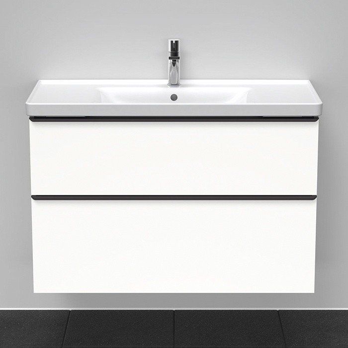 Тумба под раковину Duravit D-Neo DE435601818 подвесная белая Duravit D-Neo DE435601818 Подвесная тумба для раковины 1005*480 мм (белый матовый). С 2 выдвижными ящиками, верхний ящик с вырезом для сифона. Раковина в комплект не входит, рекомендована раковина 2367100000.
