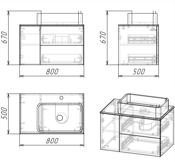 • Раковина - нет в комплекте, приобретается отдельно