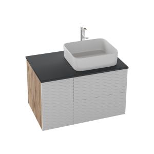 Корпус тумбы выполнен из влагостойкого ЛДСП, фасады ящиков и двери - из МДФ 3D (плетенка) в белой матовой пленке Soft Touch, столешница из МДФ в матовой пленке в цвете графит. Материалы устойчивы к перепадам температур и высокой влажности. Тумба крепится к стене.