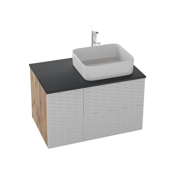 Тумба подвесная Альба 80 см - функциональное и практичное исполнение. Белый матовый цвет с 3D рисунком безупречно сочетается с фактурой под дерево и позволяет тумбе органично вписаться в интерьер ванной комнаты.
