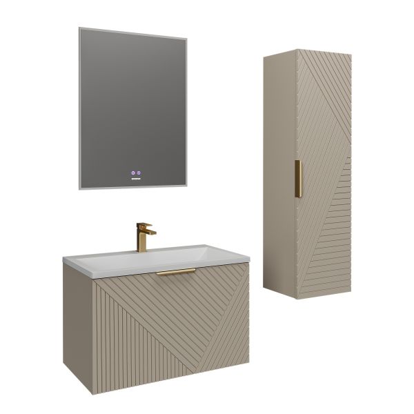 Корпус и фасады выполнены из влагостойкого МДФ, покрытого высококачественной матовой краской. Это гарантирует устойчивость к влаге и долговечность при ежедневном использовании в условиях повышенной влажности.Размеры: