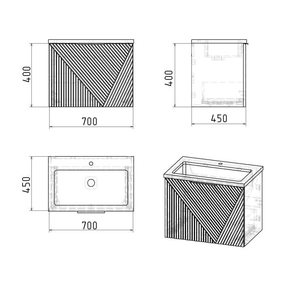Корпус и фасады выполнены из влагостойкого МДФ, покрытого высококачественной матовой краской. Это гарантирует устойчивость к влаге и долговечность при ежедневном использовании в условиях повышенной влажности.Размеры: