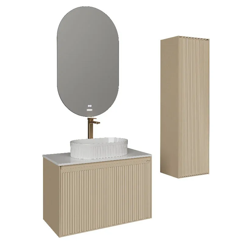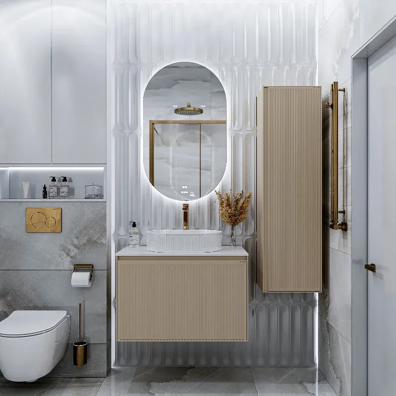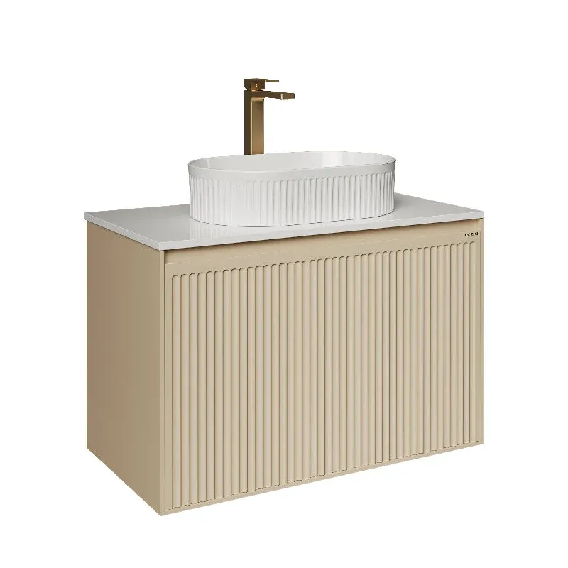 Тумба под раковину Grossman Кристалл 108044 80 см подвесная цвет бежевыйПодвесная тумба “КРИСТАЛЛ” 80 см с 1 ящиком — стильное и функциональное решение для современной ванной комнаты. Корпус и фасады выполнены из прочного МДФ. Элегантный фасад с вертикальным рифлением придаёт изделию изысканный внешний вид. Безручечный дизайн и скрытые направляющие с доводчиком обеспечивают комфортное и бесшумное использование.Тумба предназначена для настенного монтажа, в комплект входят надёжные подвесы для крепления.Столешница “КРИСТАЛЛ-80 см” из искусственного камня приобретается отдельно.